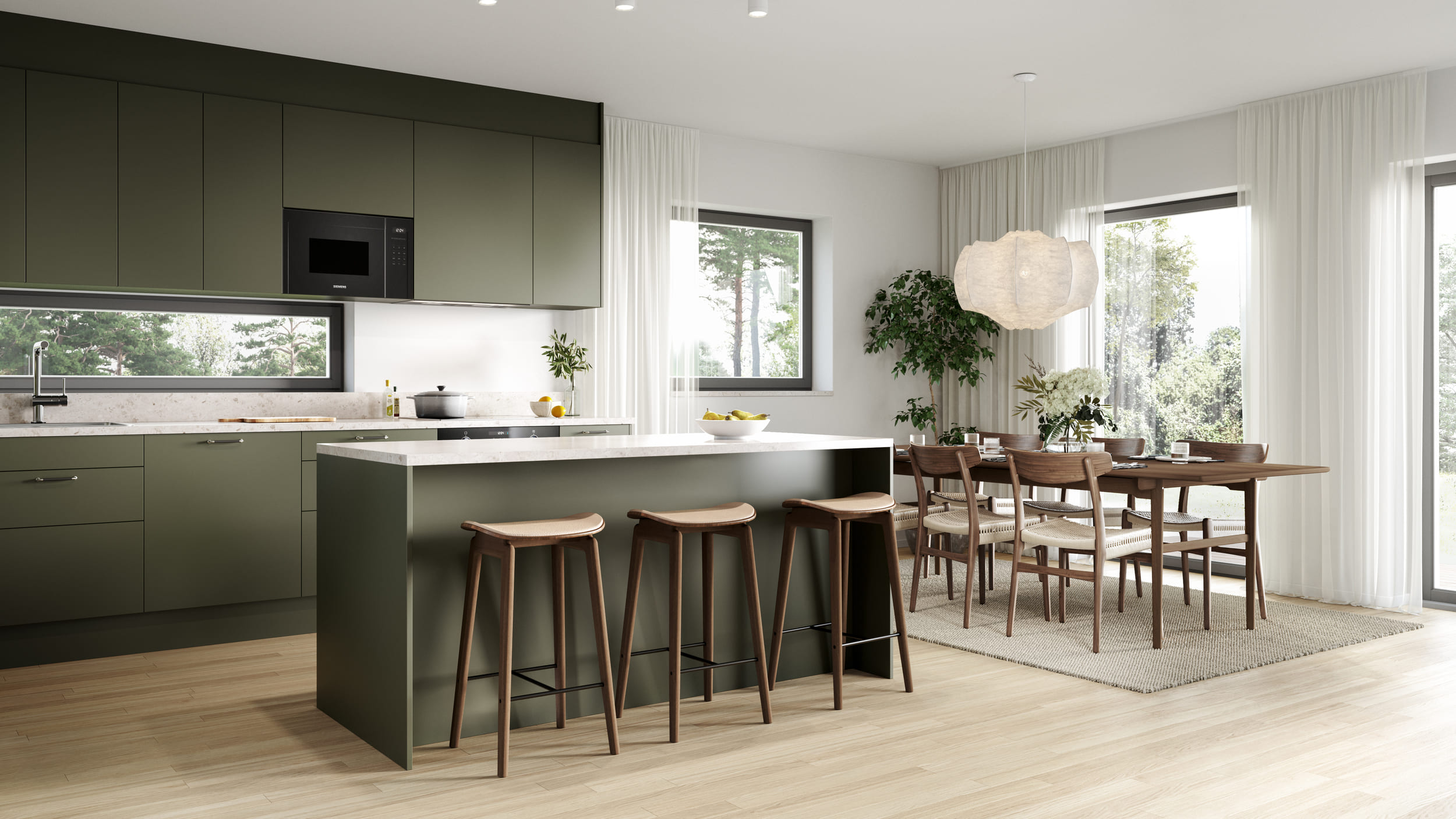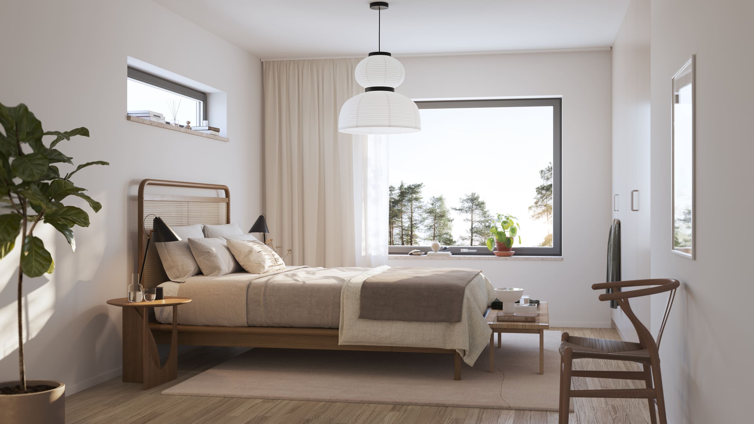 I Vegalund flyttar du in i generösa parhus på cirka etthundrafemtio kvadratmeter, fördelade på två plan och en inredd vind. Här får du en social entrévåning där kök, matplats och vardagsrum hänger samman och öppnar sig mot uteplatsen, en mer privat övervåning med familjens sovrum och högst upp en flexibel vindsvåning med egen takterrass som kan bli extra vardagsrum, hemmakontor eller ett stort sovrum. Interiören präglas av stora fönster, enstavig ekparkett och lugna färger som ger en harmonisk bas att inreda efter egen stil. Utanför väntar en egen tom och två parkeringsplatser. Samtliga bostäder är förberedda för solceller och elbilsladdning. Här är det lätt att leva bekvämt, modernt och hållbart nära naturen.
